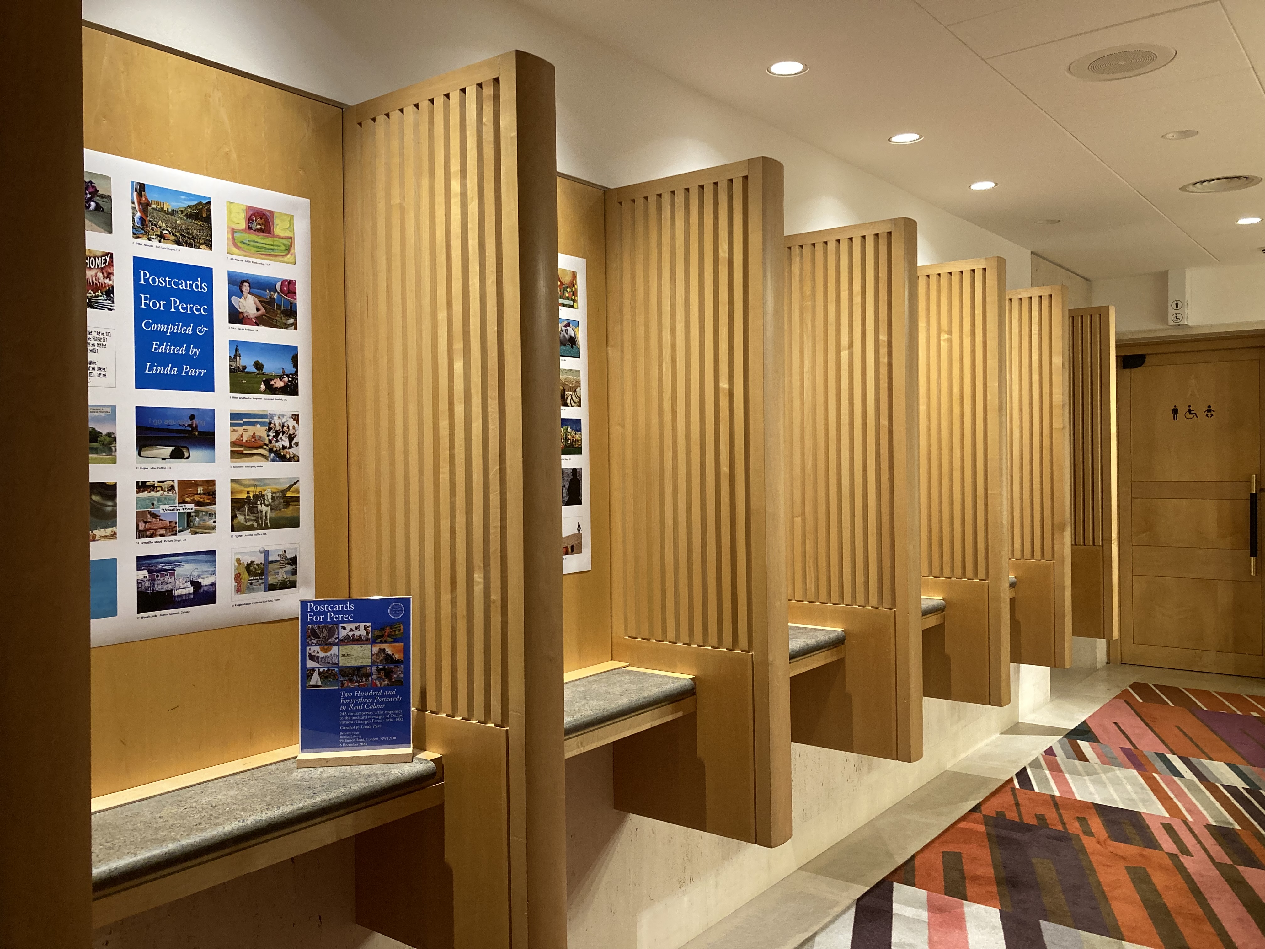 Postcards for Perec was invited by Dr. Sophie Defrance, Curator Romance Collections, to exhibit at the Knowledge Centre of The British Library, to accompany a symposium on the Collections in French. Posters looked good in former telephone booths, and I was delighted to be able to speak about the project in a panel regarding artists’ books. December 6th 2024.