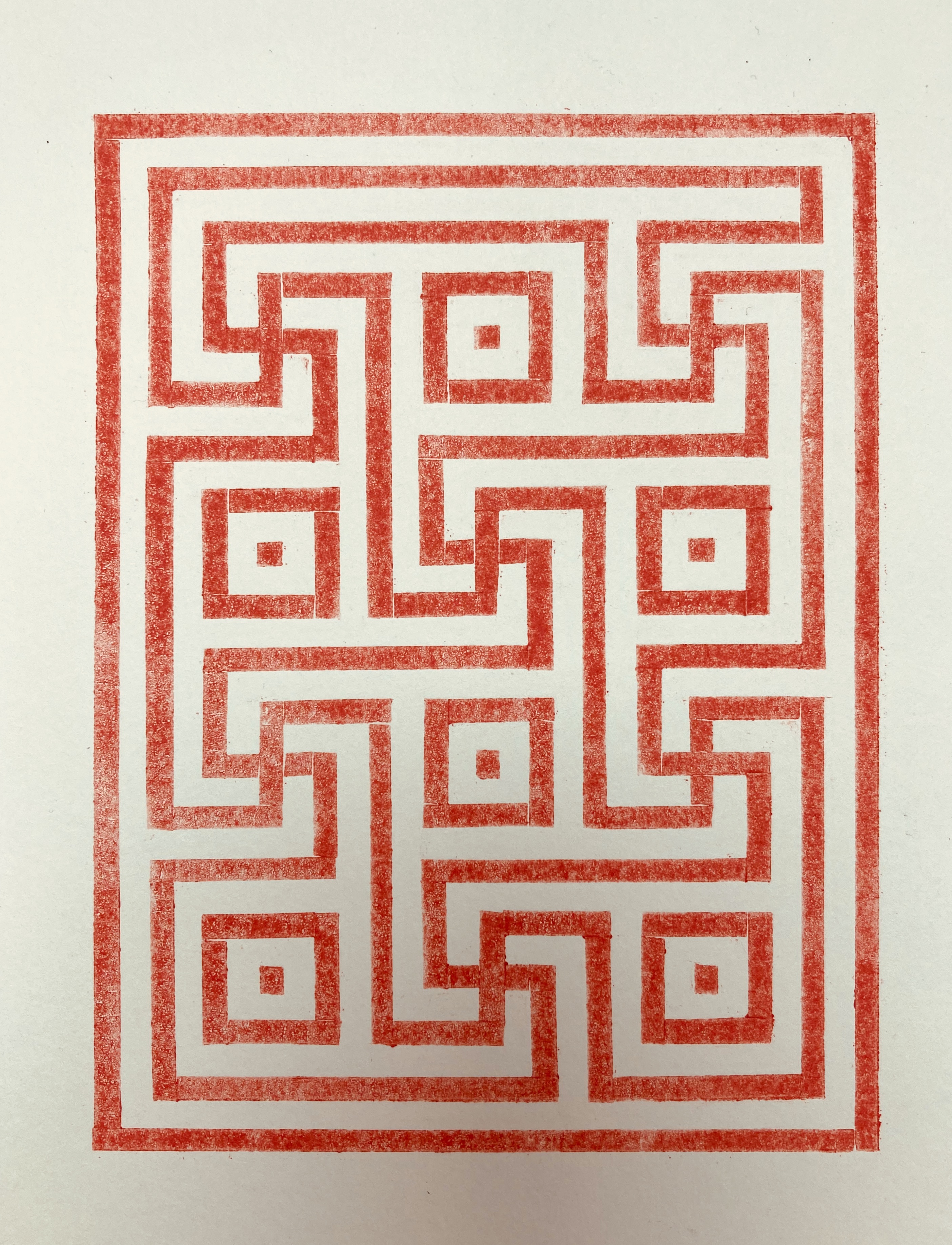 Monotype 1/1, Hawthorn dense black ink on Somerset smooth paper, 408mm square. Studio help from Maxine Foster. Image by Peter Stone. I’m delighted to say that my print was awarded first prize and was on display in the Old Bodleian Library in 2022, then added to the Bodleian Collection.